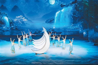 江西宜春明月山“明月千古情”景区上演嫦娥奔月。 朱贵添摄(人民视觉)
